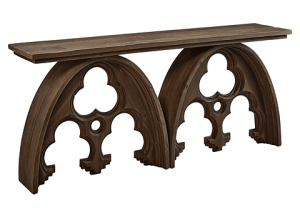 Our Whitman console takes rich, carefully cut layers of recycled pine and crafts them into a Gothic-inspired piece that offers the depth and sophistication of age-old windows gazing out onto a cobbled city street. A rustic finish adds the final amount of polish to these gorgeous arches.