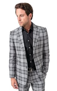 MEN’S GREY PLAID PEAK LAPEL SLIM FIT SUIT SEPARATE JACKETS: $129.99.